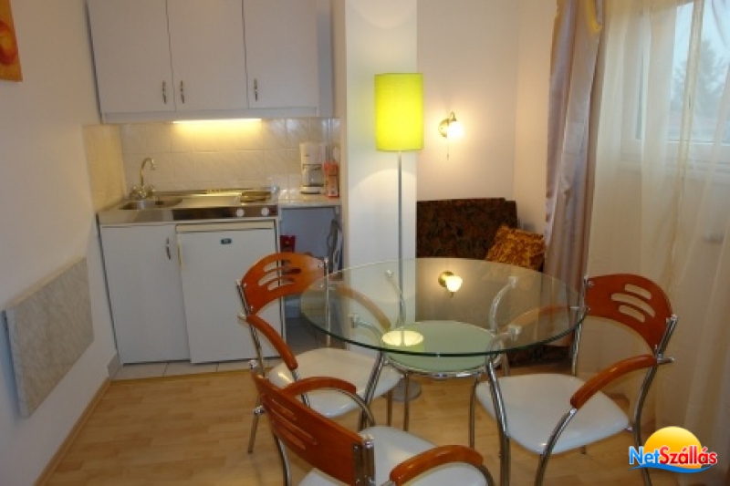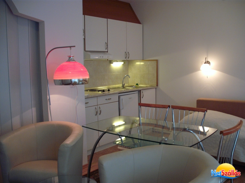 A hangulatos, igényes berendezésű, külön bejáratú, balkonos vagy teraszos klimatizált stúdiók és 2 szobás apartmanok első osztályú komfortfokozattal teszik teljessé a pihenést , kikapcsolódást és relaxálást a termáltótól csak 20 percre