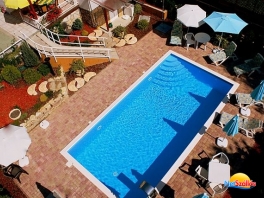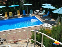 -Mediterrán kert úszómedencével, napozóágyakkal, napernyőkkel