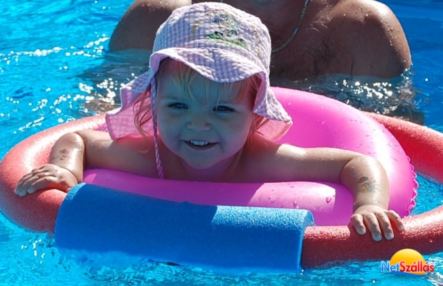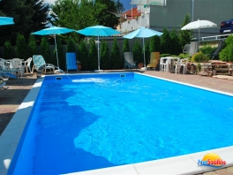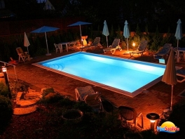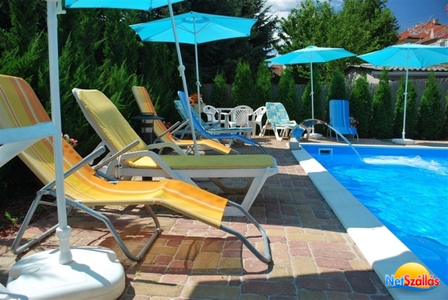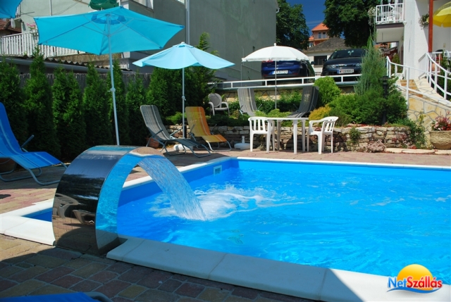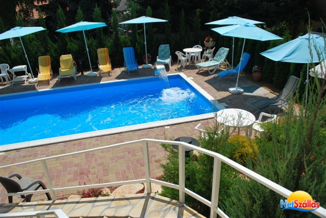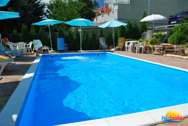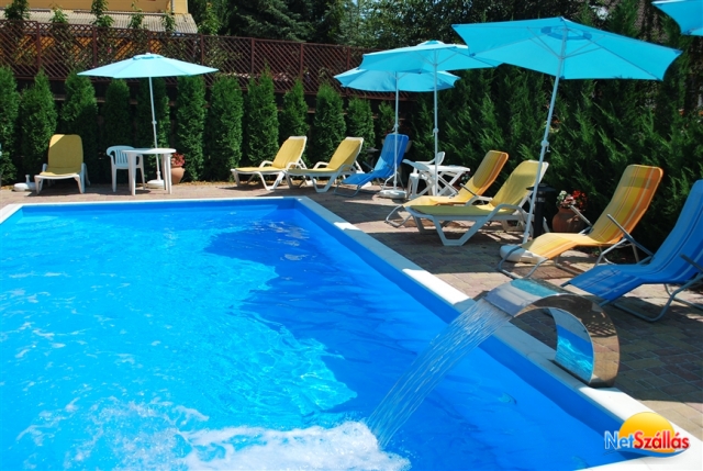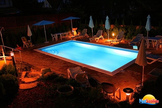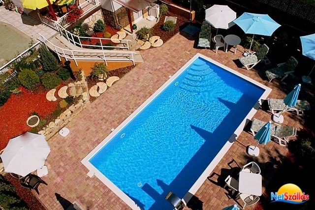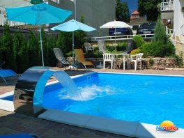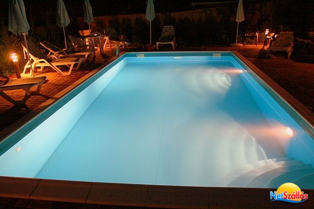 - Úszómedence 4x8x1,5 m ellenáramoltatóval /korlátlan úszási lehetőség/ és nyakmasszírozós nyakzuhannyal.