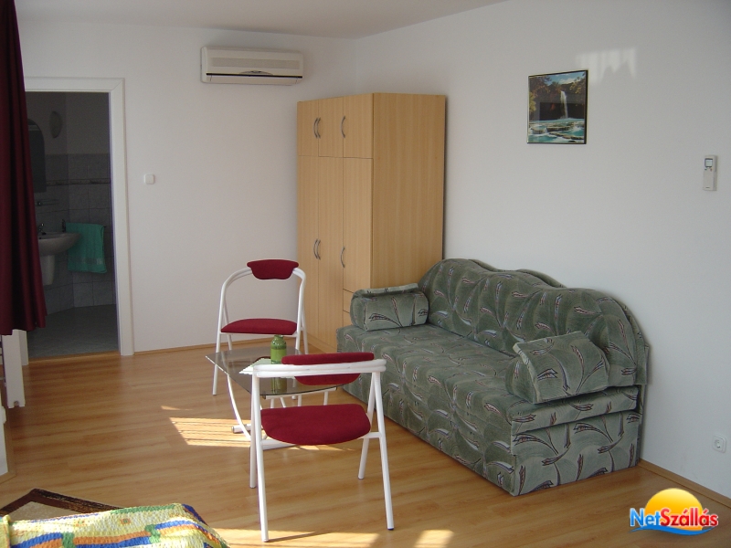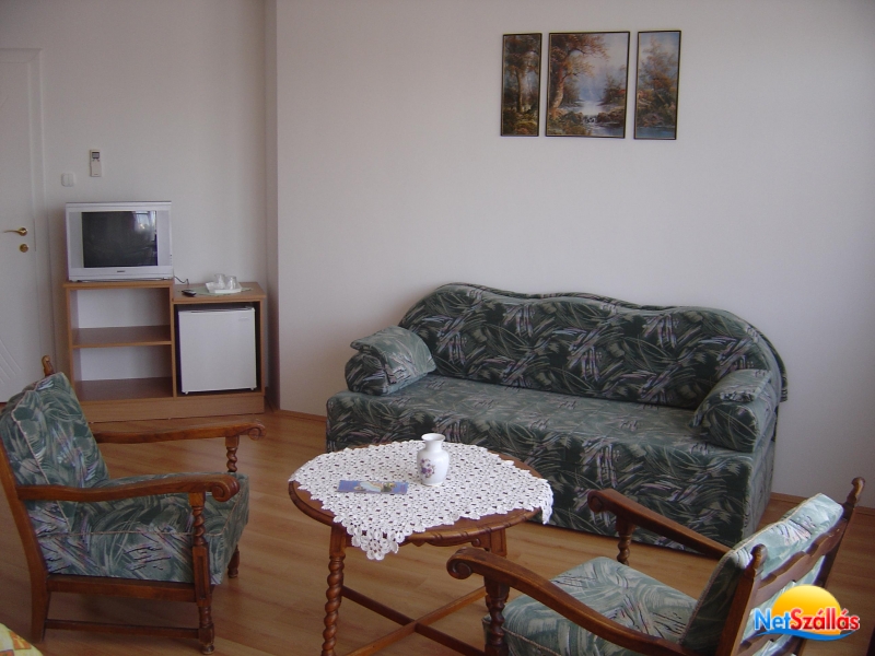 Az apartmanban 1 kétágyas, 2 négyágyas, 1 öt férőhelyes szoba biztosítja a gondtalan pihenést. A szobák elengedhetetlen tartozékai a fürdőszoba, televízió, hűtőszekrény, az egyénileg szabályozható légkondicionálás és fűtés.