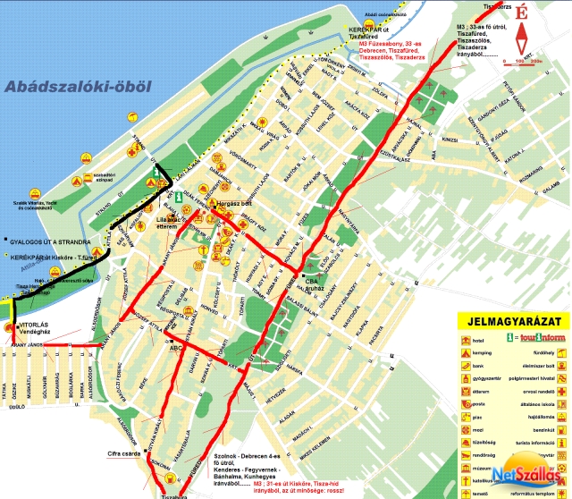 Az abádszalóki ATTILA öböl közvetlen közelében, a horgászok által kedvelt NAGYKUNSÁGI főcsatornától és a ma már egyedül megmaradt ártéri erdőt szegélyező Erzsébet ligettől néhány lépésre, a Tisza-tavi kerékpárúttól 30 méterre, a csendes és nyugalmas üdülő övezetben található a VITORLÁS VENDÉGHÁZ és ÉTTEREM. 6 db két ágyas és 2 db három ágyas (zuhany + wc) televízió, hűtő, szobával, 2 db 2 ágyas, teljes komfortos Apartman de lux szálláshellyel, valamint 3 db két hálószobás, nappali-étkezős, teljes komfortos APARTMAN faházzal várjuk vendégeinket. Valamennyi szálláshelyünk hűtő – fűtő klímával ellátott. Szálláshelyünkön összesen 34 főt (pótágyakkal 40 főt), a (KÖZUTAS VENDÉGHÁZ + 12 fő) tudunk elhelyezni. Nagy terasz, bográcsozó hely, medence napozóágyakkal, fedett kiülő – foglalkoztató, kerékpár, ping-pong asztal, zárt parkoló, ingyenesen áll a vendégek rendelkezésére