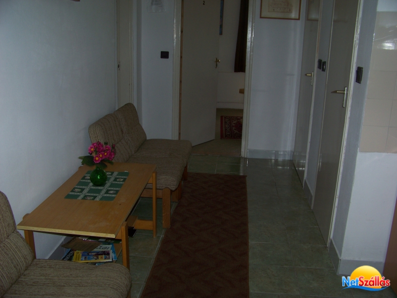 Az épületben a szobák a földszinten vannak, közös vendégkonyha lehetőség adott. Az apartman 2 szobás, 5 személy elhelyezésére alkalmas, saját konyhával rendelkezik, 1 zuhanyzós fürdőszoba van benne. A zuhanyzós szobák:2 személy részére lettek kialakítva.