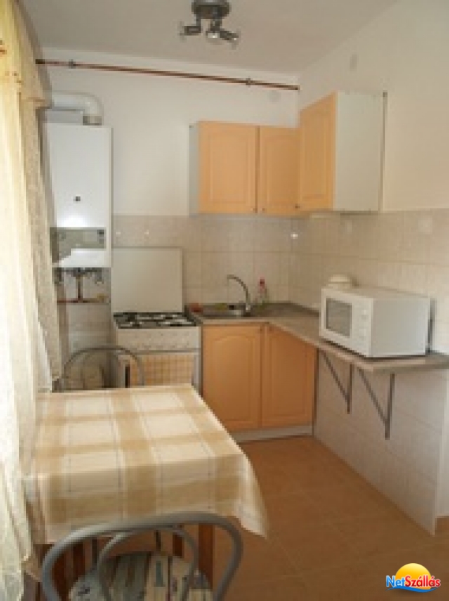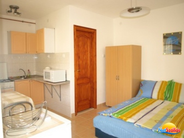 Az apartman egylégterű, franciaágyas,jól felszerelet konyhával és külön fürdőszobával rendelkezik.