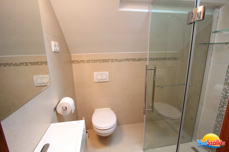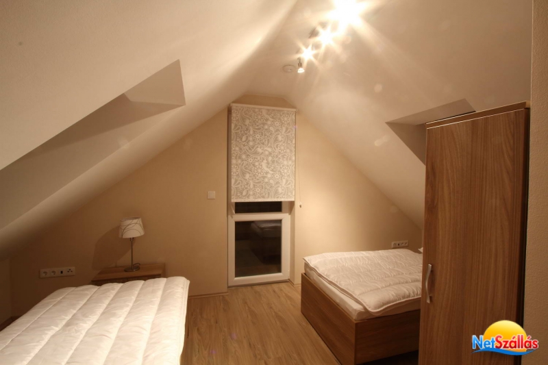 A ház kétágyas szobákkal rendelkezik. A hét szobából 3-hoz tartozik saját fürdőszoba, a másik két-két szobához egy-egy közös fürdőszoba van. Vendégeink részére a WiFi térités mentes. A két konyhát vendégeink igényeik szerint használhatják. A szobák önállóan riaszthatók, ha igény van rá. Az egész-ház füstjelzővel van ellátva. (A tűzjelző riasztása 50.000 Ft büntetést von maga után.) Vendégeink gépjárműveit kamera "védi".