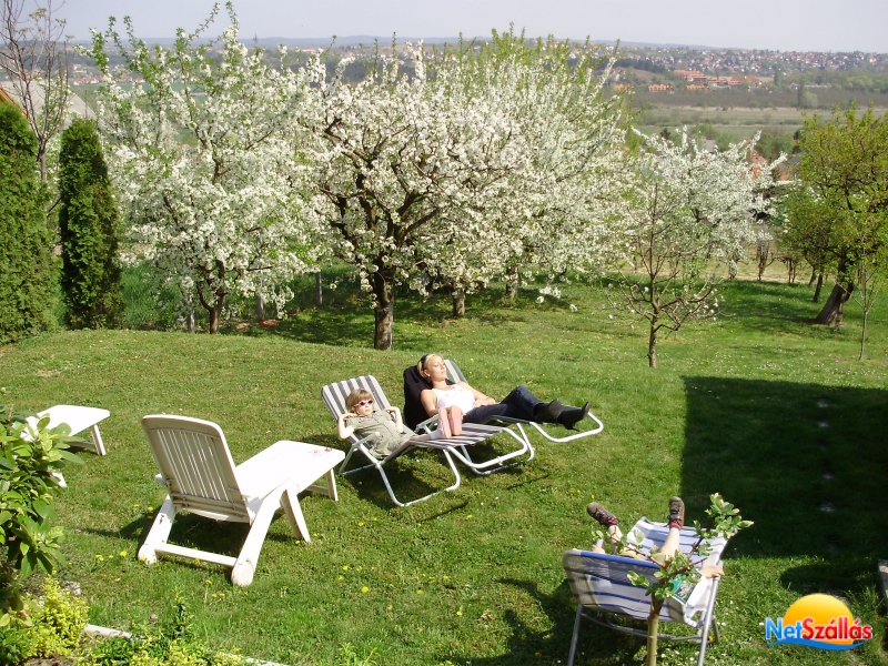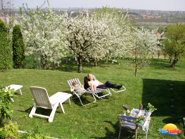 A ház mögött nagy pihenőkert van grillezési, bográcsozási, napozási lehetőséggel, valamint nyári faházzal.