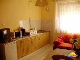 Minden apartmanhoz tartozik egy hálószoba, egy nappali szoba, fürdőszoba WC-vel,  jól felszerelt konyha, TV, és  nagy balkon. A nappali szobában is két személy részére van alvási lehetőség. Törölközőt biztosítunk. Ingyenes vezeték nélküli internet (WIFI) áll a vendégek rendelkezésére. Ingyenes kerékpár használat.