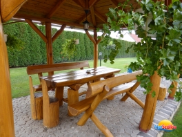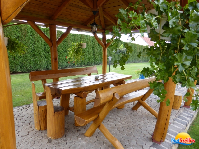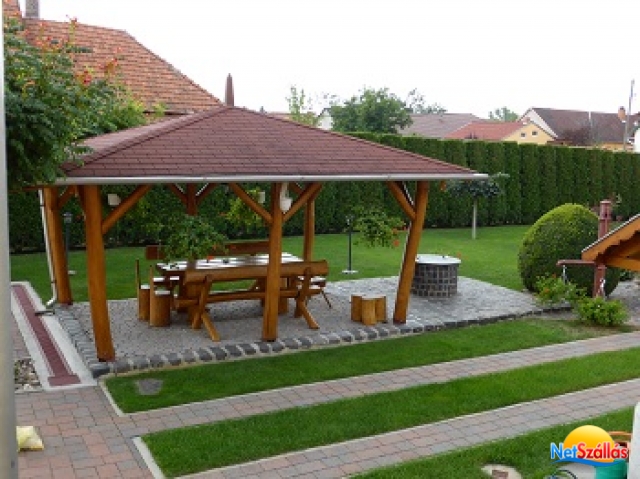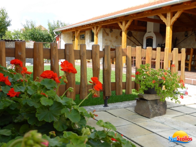 Szépen parkosított udvar, szabadtéri bográcsozás, grillezés lehetősége kialakított helyen.
