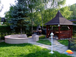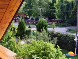 Az épületet 2500 m2-es parkosított udvar veszi körül. Az udvar zöld gyepén egy 18 fős filagória várja a nyugalomra áhítozókat, akik a kertben pihenve grillpartit is rendezhetnek, szomjukat pedig a falu pincéiben helyi borokkal olthatják.