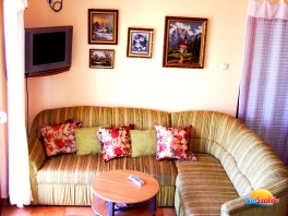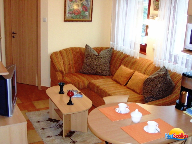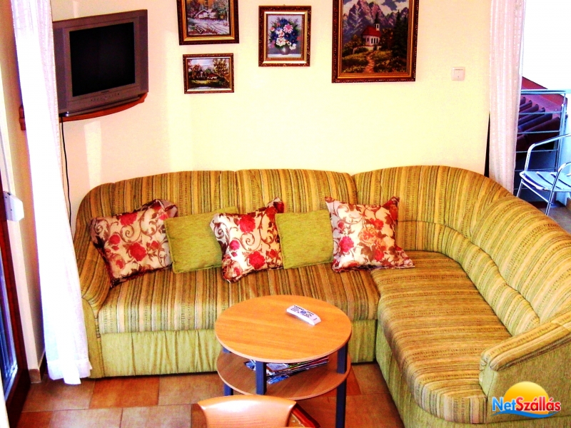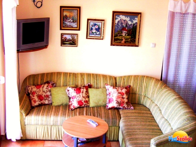 A  hálószobában franciaágy, míg a nappaliban egy ill. két fő részére  kényelmes, fekhellyé alakítható sarokkanapé, színes TV, ingyen internet  csatlakozás /WiFi/ áll a vendégek rendelkezésére.