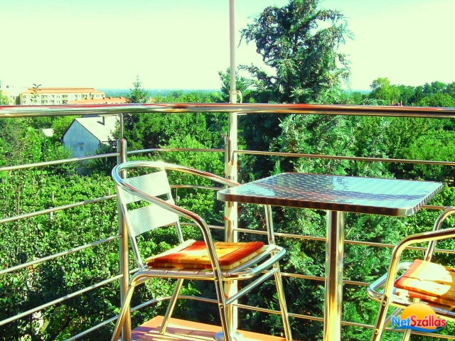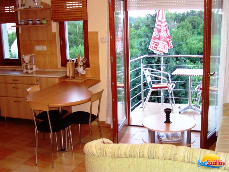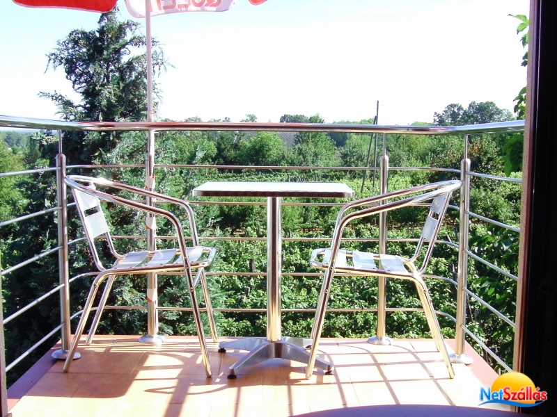 Mindkét apartmanhoz tartozik erkély, ahonnan festői panoráma tárul a környező szőlőskertekre és a városra.