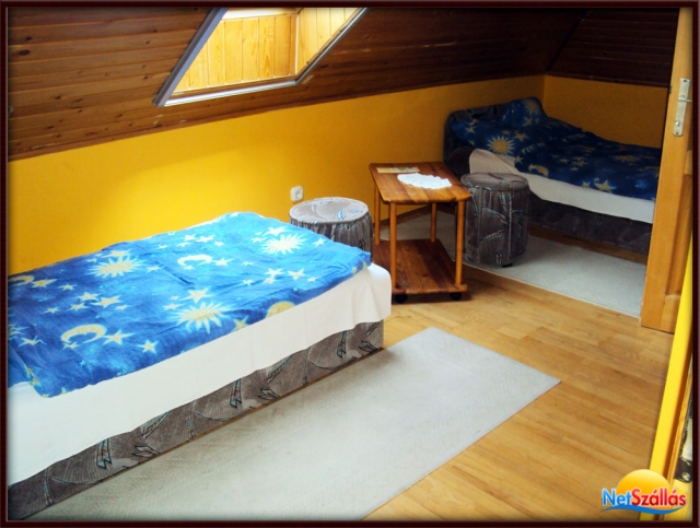 Vendégházunk négy, két fős, kényelmes emeleti szobával rendelkezik, melyek igény alapján pótággyal bővíthetőek. Minden szobához külön fürdőszoba, televízió és internet hozzáférés (Wifi) tartozik. A közös előtérben egy jól felszerelt konyha áll rendelkezésre vendégeink részére.