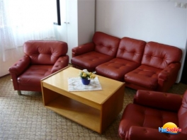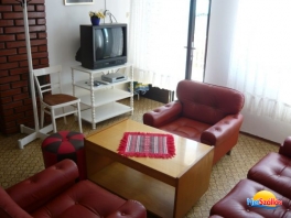 A nappaliban ülőgarnitura található TV-vel,parabola antennával.