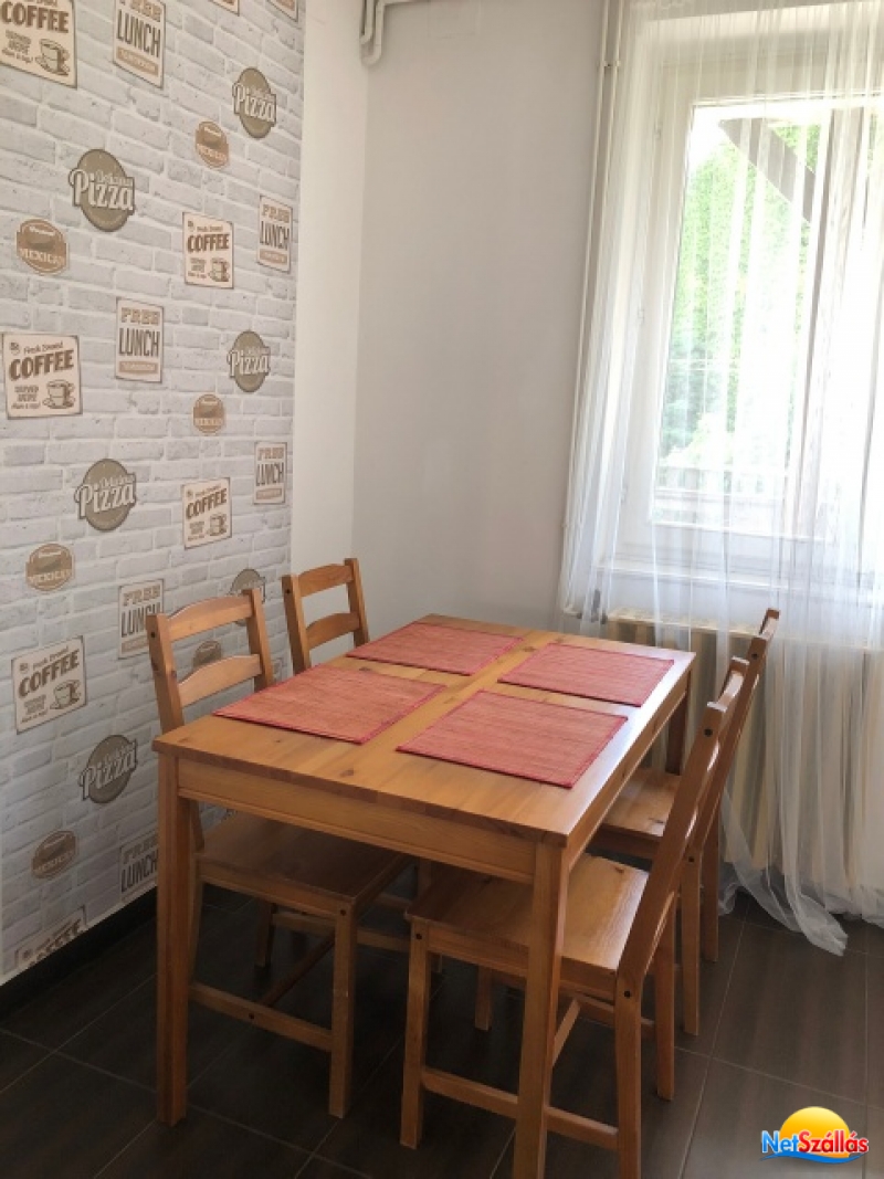 Az apartmanház Balatonboglár központjában de mégis kellemes nyugodt utcában található.Ideális családosok,idősebb korosztály és a fiatalság számára egyaránt.Az apartmanok igényesen felújítva,teljesen felszerelve.(kábel tv,hűtő,mikro,kenyérpirító,vízforraló,beépített villanytűzhely)Az apartmanházban 5 teljesen különbejáratú lakás található.Ebből 2 négyszemélyes a földszinten-kertkapcsolattal,3 az emeleten ebből egy négyszemélyes,egy három személyes,egy hatszemélyes apartman.Mindegyikhez külön terasz tartozik.Az udvar 1260nm.A házban a földszinten található egy közös társalgó ahol a vendégek ismerkedhetnek,beszélgethetnek egymással.)Autóval parkolni a zárt udvarban lehet.Az udvaron 9x4 úszómedence, gyerekeknek rönkhinta,grillezési lehetőség várja minden kedves pihenni,nyaralni vágyó vendéget!