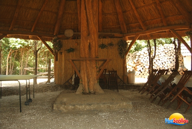 Az udvarban fedett kerthelység, nádtetős grill-terasz, kerti bútor és bográcsozási lehetőség várja a kikapcsolódni vágyókat.