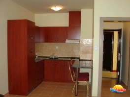 Szekrény, asztal, szék, főzési lehetőség biztosítása 2 főzőlapos tűzhellyel, főzőedények, evőeszközök, mikro, kávéfőző, vízforraló, hűtőszekrény, kenyérpirító, törölgető.