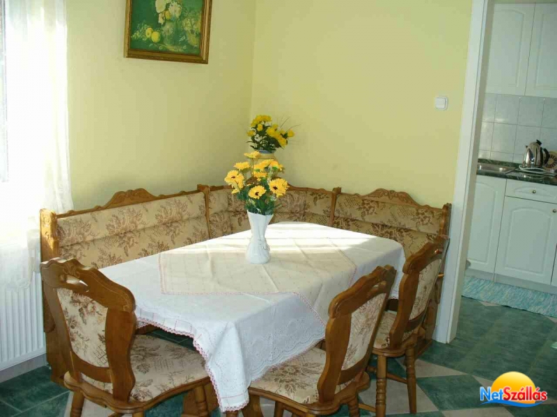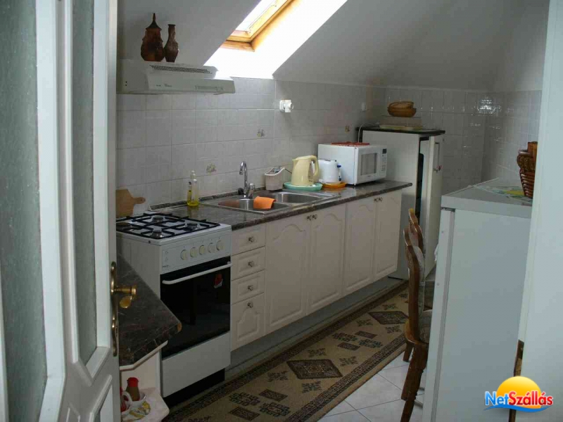 Tv készülék és bútor széf található. Vendégeink étkezését egy nagy társalgó és jól felszerelt konyha melyben külön hűtőszekrény áll rendelkezésre. Az apartmanban 4-5 fő részére 2 szoba, 2 fürdőszoba, 3 Wc, társalgó, jól felszerelt konyha valamint garázs tartozik.