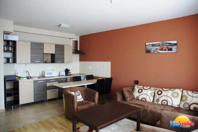 Teljes berendezése modern, tágas és otthonosan kényelmes. Igényes belső kialakításuk mellett az apartmanok jól felszerelt konyhával, összesen 40-48m2-es alapterülettel rendelkeznek.