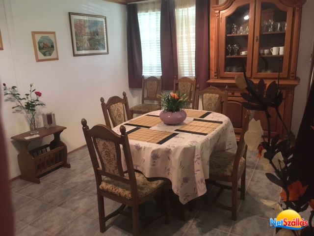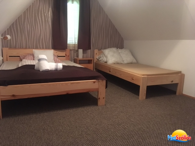 Különálló emeletes faház 5 férőhellyel.Az emeleten egy szoba 3 fő részére. Az alsó szinten 1 hálófülke,ebédlő,konyha,fürdőszoba és terasz található. A konyha teljesen felszerelt,minden van benne,ami egy háztartásba szükséges. Alapvető fűszerek,szalvéta,papírtörlő,kávé,tea ingyenesen áll vendégeink részére.Igény esetén törölközőt is készítünk be térítésmentesen.Hajszárító,vasaló vendégeink rendelkezésére áll.