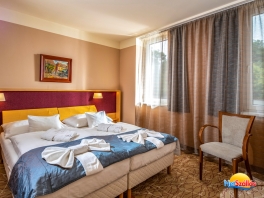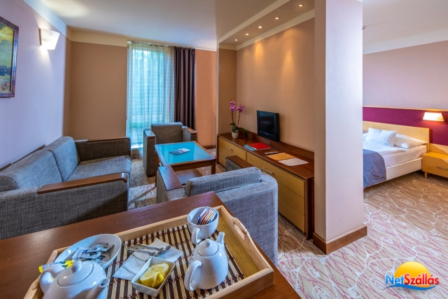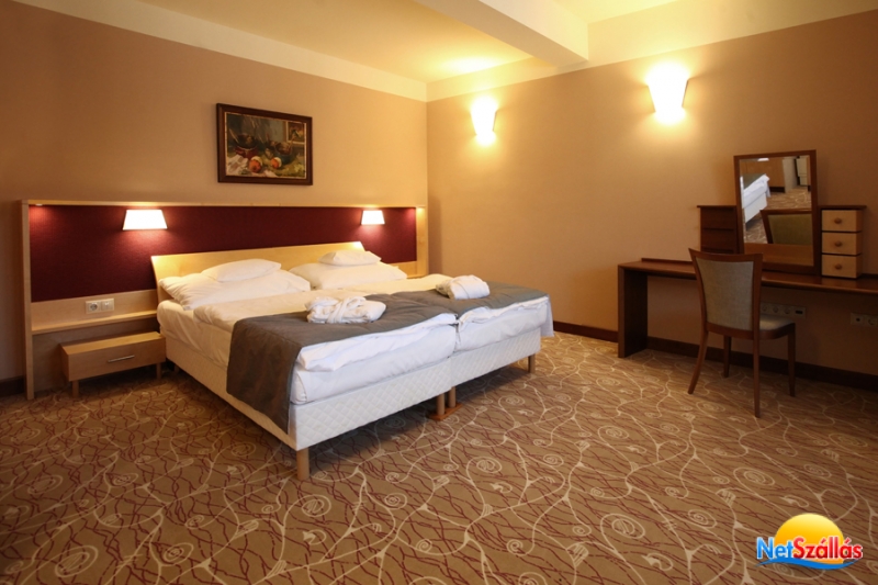 A szálloda frekventált, de mégis csendes helyen, a fürdő közvetlen szomszédságában helyezkedik el. Szobáink Összesen 88 szobánkat 4 típusban kínáljuk: classic (23 db), classic premium (42 db), superior (14 db), és lakosztály (7 db). Gondoltunk mozgássérült vendégeinkre. Szállodánkban 2 db szoba áll az ő rendelkezésükre. Superior szobáink illetve a lakosztályok pótágyazhatóak. Nászutas lakosztályunk igazi kényeztetést nyújt az ifjú pár számára. Szobák felszereltsége: minden szoba azonos felszereltségű, klimatizált, különbség csak alapterületükben van. Rendelkeznek fürdőszobával, amelyben kád vagy zuhanyzó, hajszárító és fürdőköpeny található. A szobák televízióval, telefonnal, internet csatlakozási lehetőséggel, minibárral, vízforralóval, kávé-tea bekészítéssel és szobai széffel rendelkeznek, egy részük erkélyes.
