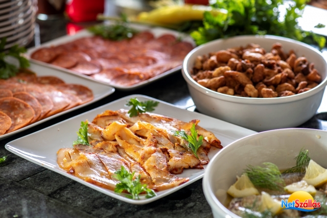 Klimatizált 180 fős, 4 részre szeparálható éttermünkben (Körterem, Legyező terem, Bankett-terem és Dráva terem) büfé és a'la carte étkezést biztosítunk, kérésre szobaszerviz áll a vendégek rendelkezésére.