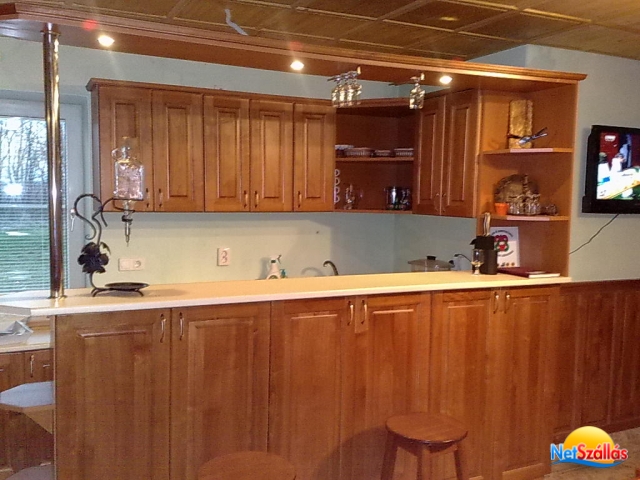 A két házban 2 x 5 db két- vagy három ágyas szoba, minden szobához fürdő és WC tartozik, modern konyha, nappali, teniszpálya, 4 ha-os kert, játszótér.