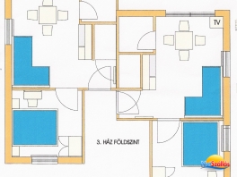 A 2002 óta működő 3 üdülőházban 6 db 2-4 személy, 1 db 4-6 személy, elhelyezésére alkalmas lakrész várja a vendégeket, 1700 m?-es kertben.