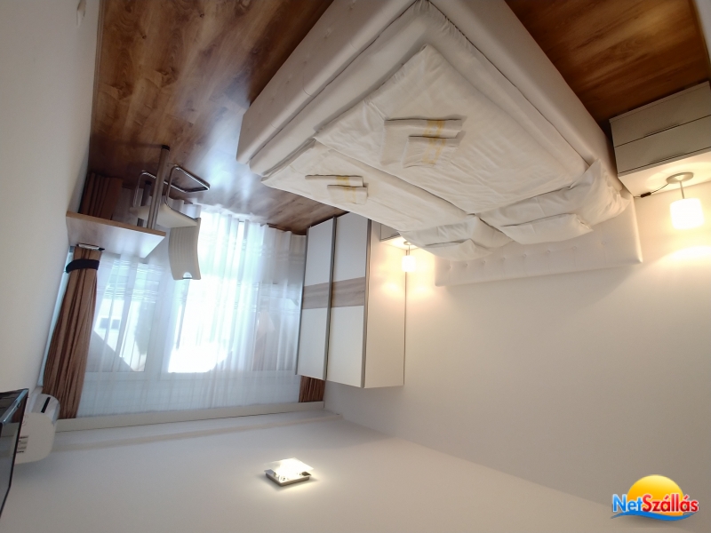 Családias apartmanházunkban 4 és 3 szobás apartmanok várják Önt. Minden szobában, TV, klíma, tusoló és WC található. Az apartmanok amerikai konyhával felszereltek.