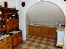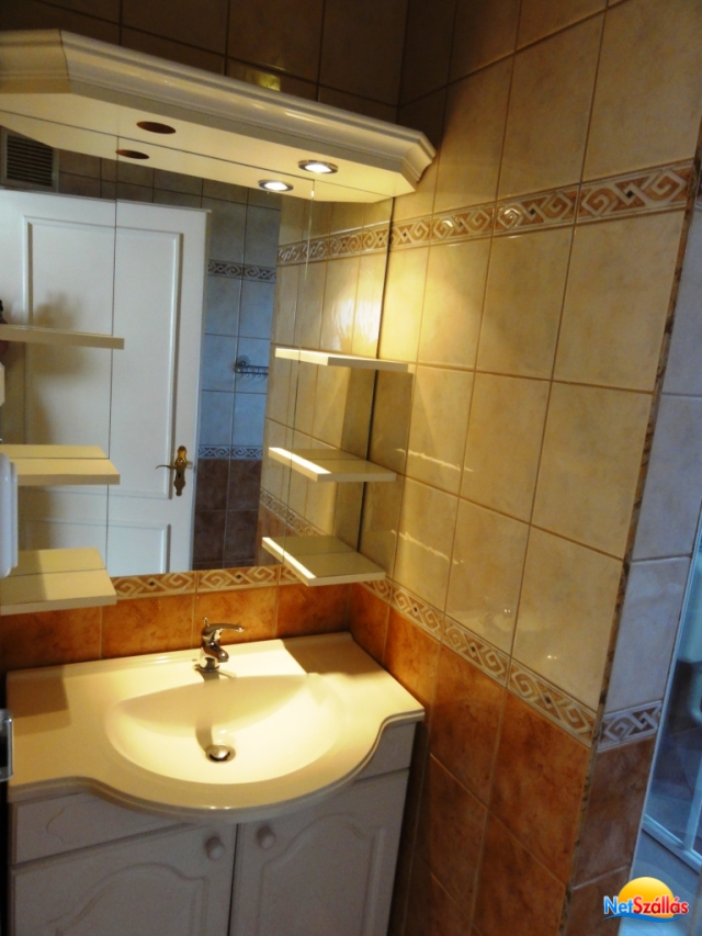 A ház felső különbejáratú szintjén 3 hálószoba, 2 fürdőszoba, nagyméretű nappali és tágas étkezős konyha található. Ez a lakrész a ház hátsó részén külön külső lépcsőfeljárattal közelíthető meg, valamint ehhez a szinthez tartozik egy nagyméretű terasz is, ahová a reggeli napsütés biztosan kicsábítja a vendégeket a reggeli elfogyasztására, vagy egy esti finom bor melletti beszélgetésre.