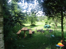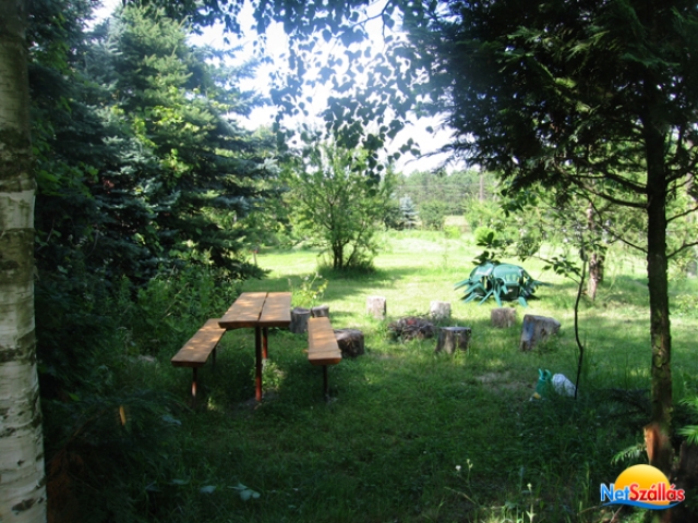 A házhoz nagy füves kert tartozik tűzrakóhelyekkel, kerti padokkal.