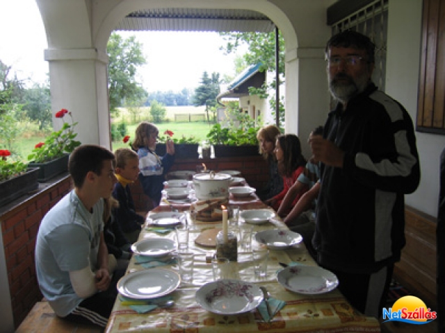 A házban egy 2ágyas + 4ágy az előtérben, és egy 6 ágyas szoba van, valamint felszerelt konyha és fedett terasz asztalokkal áll vendégeink rendelkezésére .