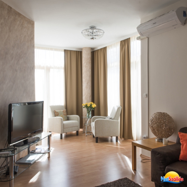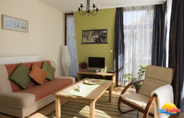 Színvonalas, tágas, igényesen berendezett, harmóniát sugárzó, külön bejáratú apartmanokkal várjuk kedves vendégeinket. Az apartmanok konyha-étkező-nappali funkciójú helyiségből, parkettás hálószobából, kádas fürdőszobából, külön WC, valamint előszobából állnak. Ezen felül létezik stúdió apartmanunk, és két hálószobás apartmanunk is. Részben saját terasszal rendelkeznek.Néhány apartmanunk légkondicionált.