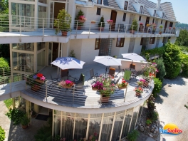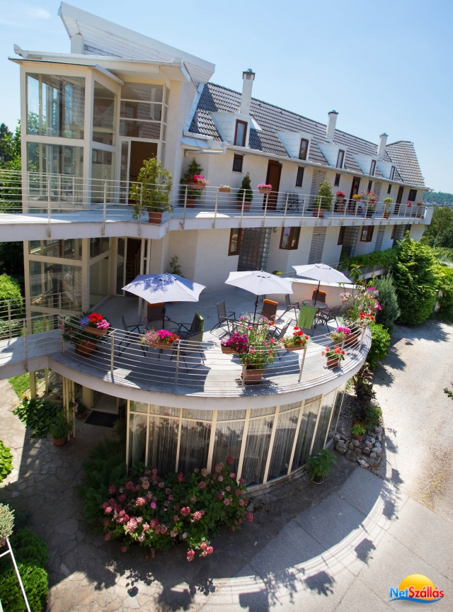 A teljes kikapcsolódást és nyugalmat szolgálja az épületet körülvevő zöldellő kert, a virágos napozóterasz gyönyörű panorámával, az aroma- és fényterápiás finn szauna relaxációs zenével, a tornaterem, jacuzzi, nyugágyak, teázó sarok.