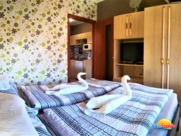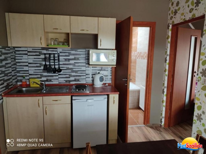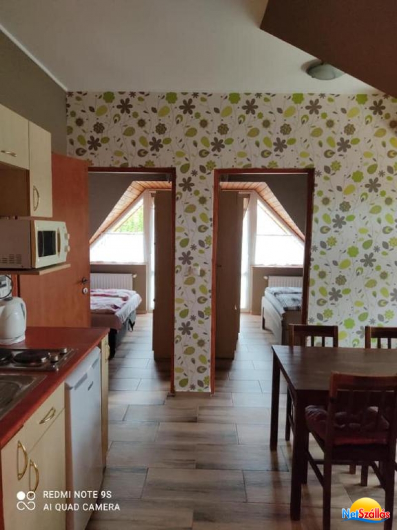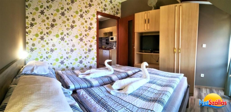 Az apartman csendes, nyugodt környezetben helyezkedik el. Minden apartmanhoz terasz, felszerelt konyha, hűtő, főzőlap, mikrohullámú sütő, vízforraló és igény esetén kávéfőző tartozik. A kábel Tv és a mozicsatorna még teljesebbé teszi a szobák komfortját. Az egy-és kétszobás apartmanok fürdőkádas és zuhanyzós fürdőszobával egyaránt igényelhetők.