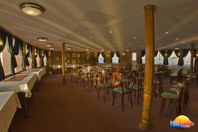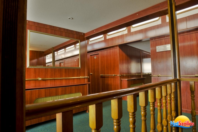 A főfedélzeten a recepció, az exkluzív kivitelű, elegáns "Lord Nelson" étterem, a "Szirén" konferenciaterem, valamint egy tradicionális tárgyalószalon, a "Nelson" található. Vendégeinket júniustól népszerű grillteraszunkra várjuk, ahol az idelátogatók finom, könnyű ételek és hűsítő italok társaságában élvezhetik a Duna-part hangulatát. Kényelmes szobáink, romantikus hangulatot ébresztenek a hozzánk látogatókban.