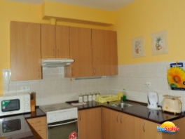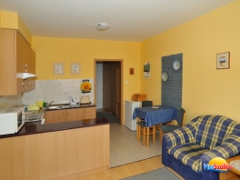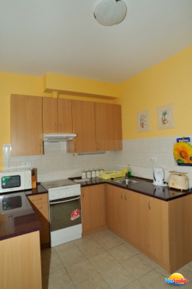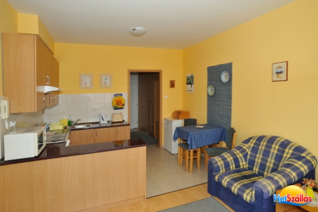 4 személyes, 2 szobás (1 nappali/hálószoba + 1 hálószoba) jól felszerelt konyha (hűtőszekrény, mikrohullámú sütő, tűzhely főzőlappal, kávéfőző), kádas fürdőszoba.