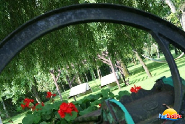A természetes relaxálást garantálja a gyümölcsfákkal tarkított nagy, 3.000 négyzetméteres pázsitos kert, kertibútorokkal,fedett közösségi térrel, gyermekjátékokkal. A nyárikonyha szinte egy kis " múzeum", a régi istállóból kialakított étterem a közös együttlétek, borkóstolás színhelyéül szolgál.