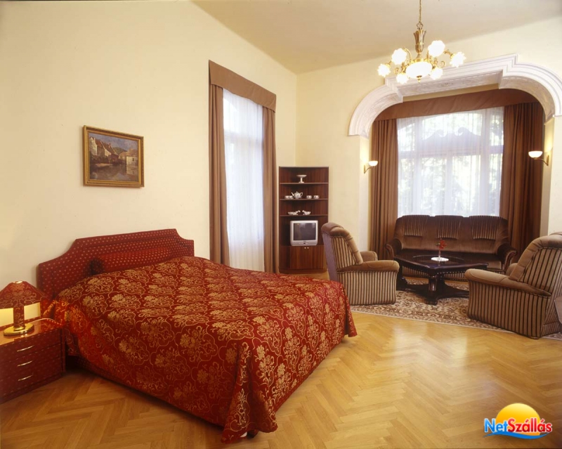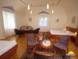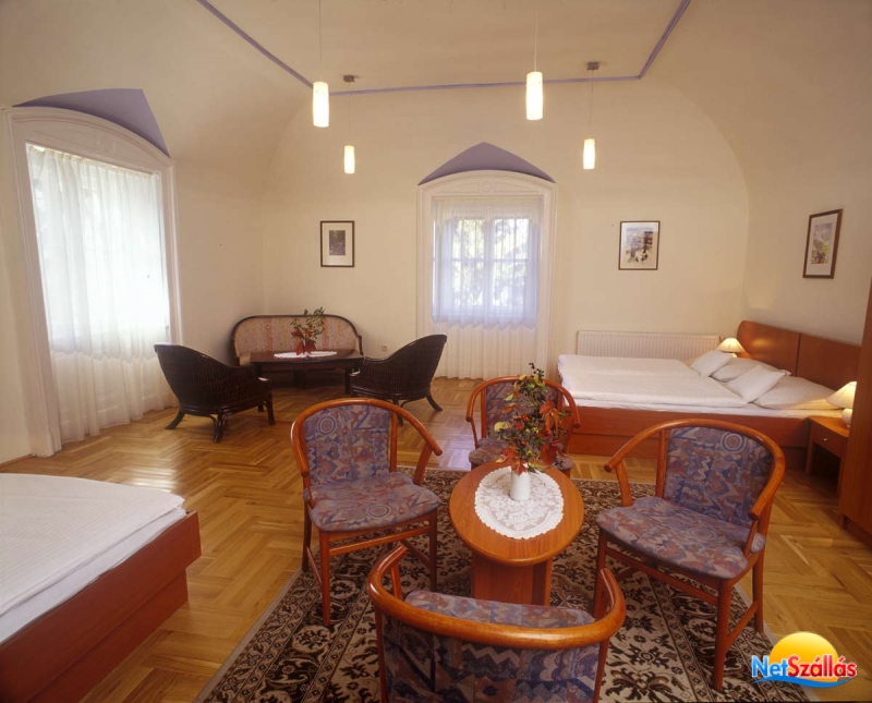 A villa *****ban épült romantikus, kastélyszerű épület, amely megőrizte a régi korok hangulatát, 9 szobájában (3 db 4 ágyas, 1 db 3 ágyas, 4 db 2 ágyas és 1 db 1 ágyas) összesen 24 fő elhelyezésére van lehetőség. Minden szobában zuhanyzós fürdőszoba, hűtőszekrény és televízió szolgálja vendégeink kényelmét. A villa hatalmas, zárt parkjában gépkocsi parkoló is található.