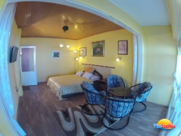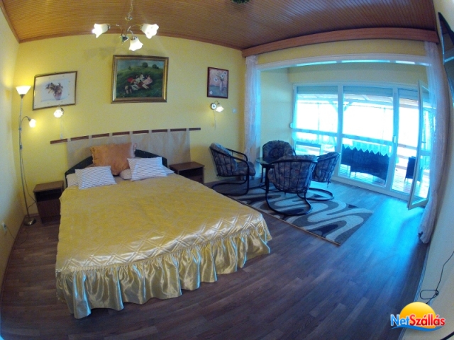 3 szoba, akár 6 személynek, fôzôfülkével, zuhanyzóval, wc-vel, és kényelmes terasszal csodálatos kilátással a tóra! A szállás egyedi fekvése külön színfolt a nyugalomra, rekreációra, és a gyerekes családoknak! A vendégek rendelkezésére áll a zárt parkoláhely, grillezô, hinta; és még a házi kedvenc is üdülhet. Vásárlási lehetôség 600 méteren belül!
