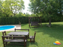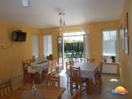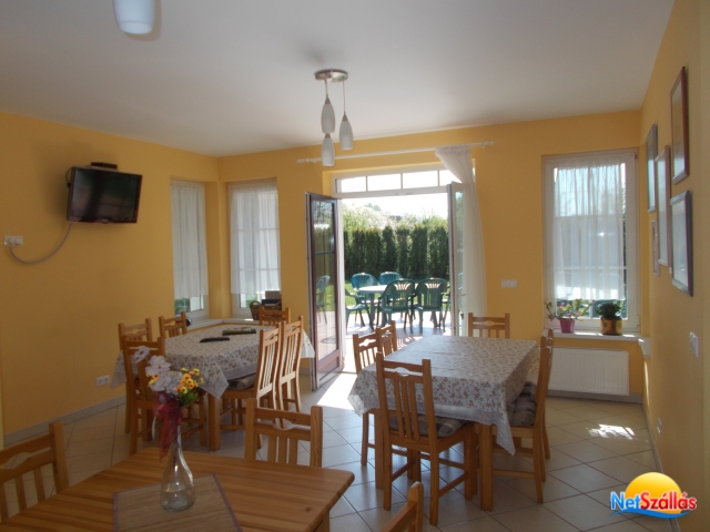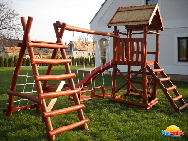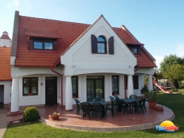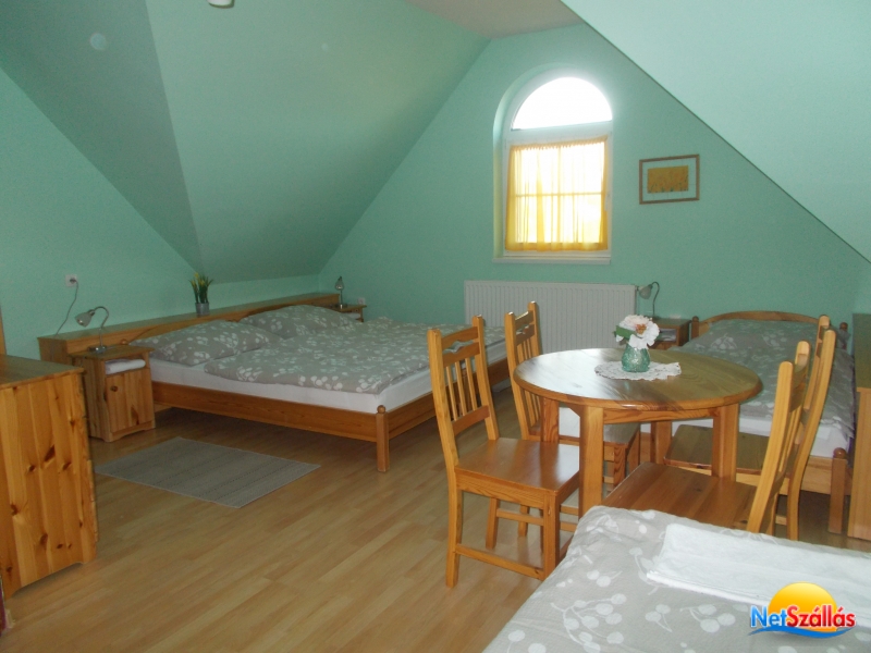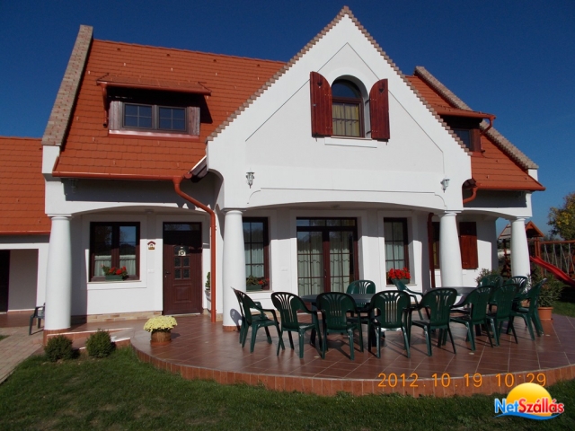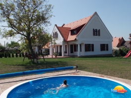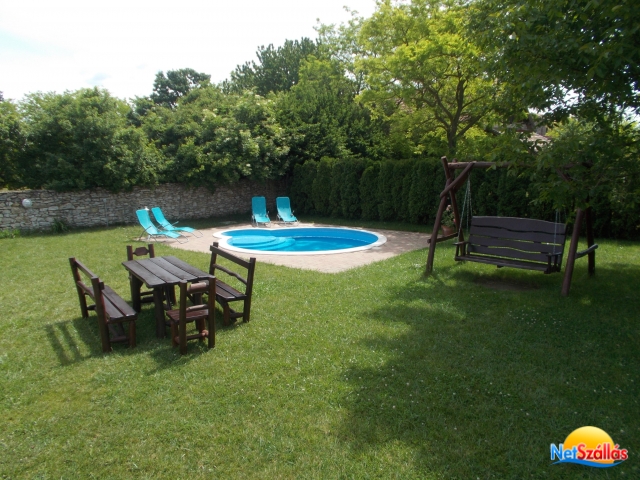 A 2011-ben épült, minden igényt kielégítő 15+2 fős önálló vendégház 5 fürdőszobás klimatizált szobával, jól felszerelt konyhával, 20 főt befogadó világos, hangulatos társalgóval és 1000m2-es kerttel és egy 20m3-es medencével rendelkezik. A házhoz tartozik egy fedett dühöngő, ami eső esetén sportolásra, kiülésre alkalmas. Zárt, udvari parkolónk 5 kocsi számára ad parkolóhelyet.