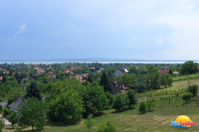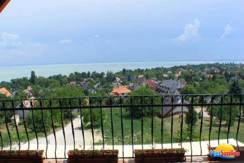 A ház egyes teraszairól és kertjéből gyönyörű panoráma nyílik a Balatonra.