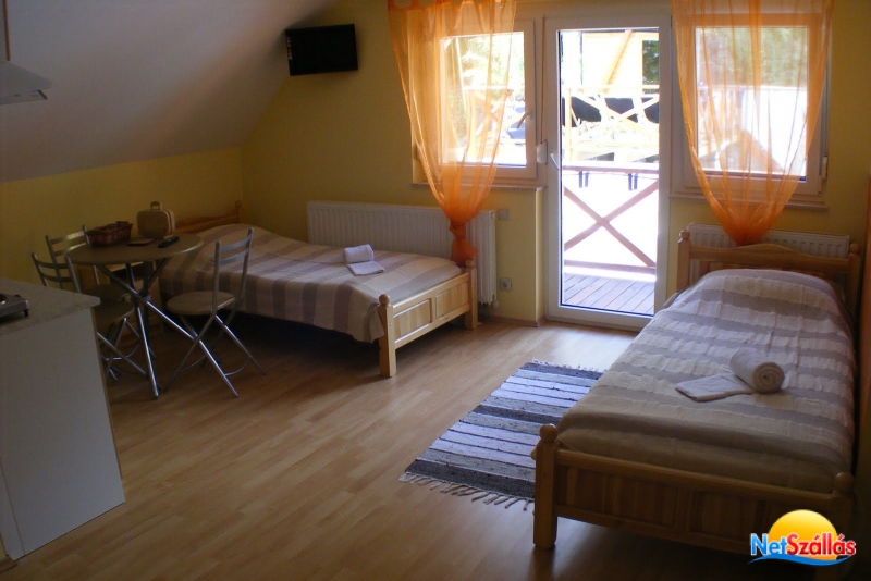 Az apartmanok 2+2 vagy 2+1 fő részére nyújtanak ideális szálláslehetőséget, melyek egy része a Balatonra, másik része pedig a medencére/kertre néz.