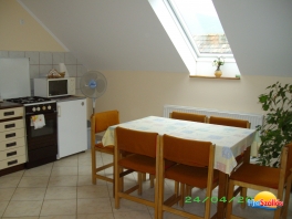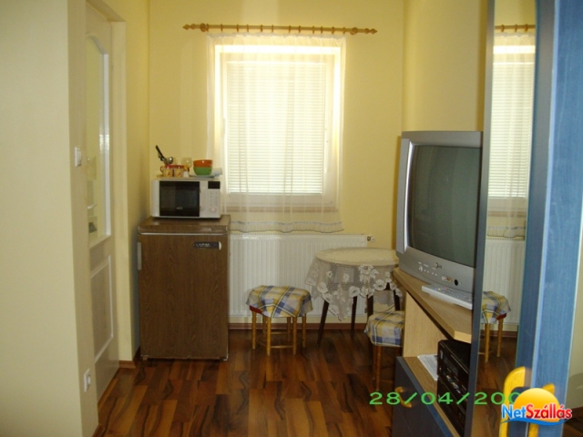 Családi házunk emeletén külön bejáratú lakrészt biztosítunk vendégeink részére.Az apartman 7 fő kényelmes pihenését szolgálja.A kertben nyársaló,grillező áll vendégeink rendelkezésére.Zárt udvaron lehet parkolni. Vendégeink a Fenyő Étteremben 10% kedvezménnyel étkezhetnek. Szép kártyát elfogadunk.