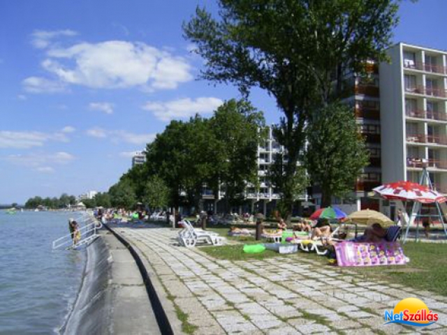 Szobáink közül 12 családi kétágyas szoba ill. szintenként 2-2 szoba össze is nyitható ill. rendelkezünk kétágyas pótágyazható szobákkal (emeletes ágy). Minden szobánk balatoni panorámás, fürdőszobás ill, tévével valamint hűtővel felszerelt. A szállás árai bőséges reggelit ill. ingyenes strandolási lehetőséget is tartalmaznak. A szálloda halljában ingyenes Wi-fi internet hozzáférést biztosítunk. A közelben (100m) található évtizedek óta üzemelő szintén családi hangulatú éttermünkben félpanziós ellátásra is lehetőség nyílik. A szálloda 150m-re saját parkolóval várja kedves vendégeit.
