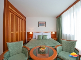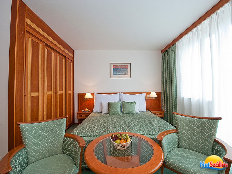 Hévíz sétálóutcájában, a tófürdőtől mindössze 200 méterre található szálloda elegáns környezetben 165 igényesen berendezett, tágas, nemdohányzó szobával, illetve apartmannal várja a kikapcsolódásra és felfrissülésre vágyó vendégeket.