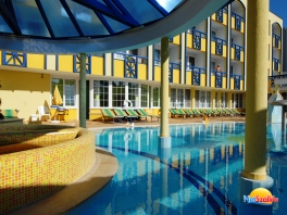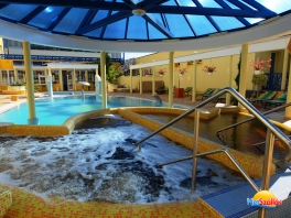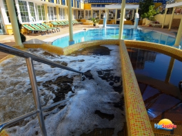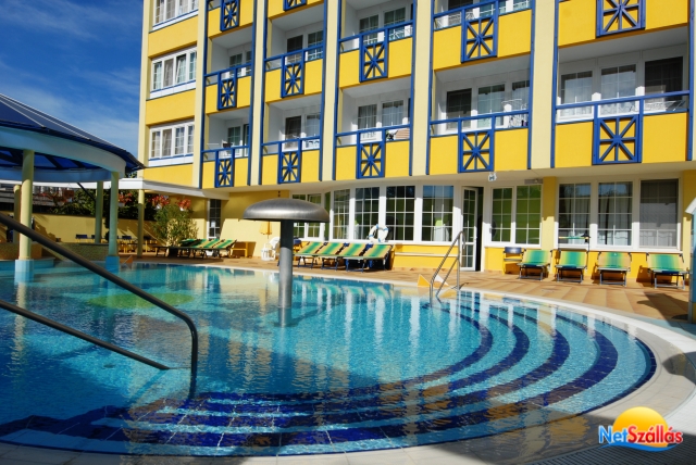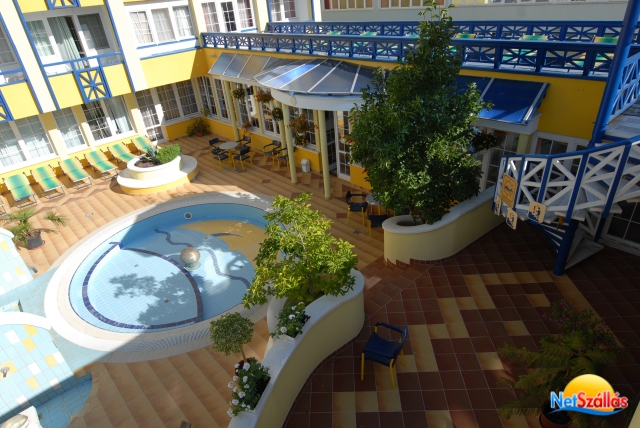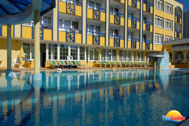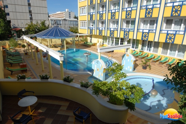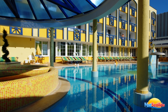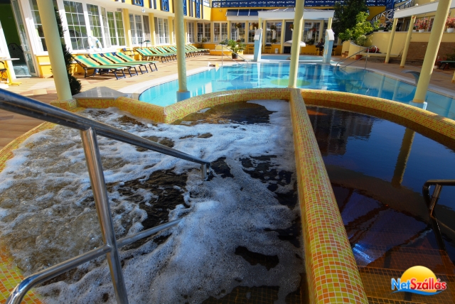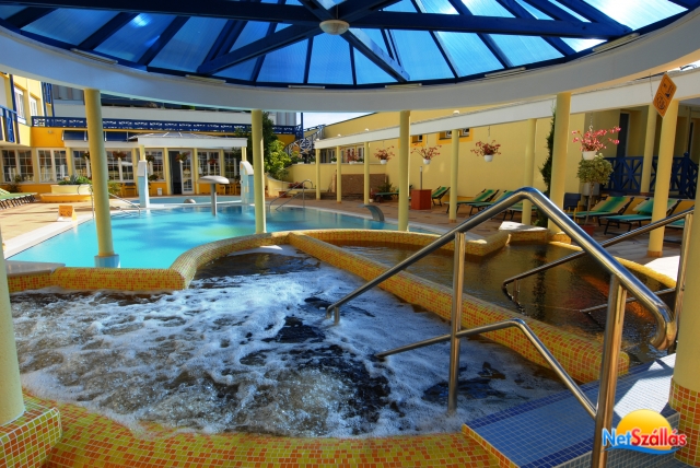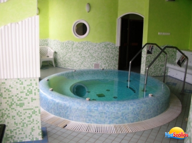 Fedett pezsgőfürdő, szauna, gőzkabin és nyári időszakban élményelemekkel felszerelt kinti strand- és gyermekmedence áll vendégeink rendelkezésére, melyek igénybevételéhez fürdőköntöst biztosítunk. Napozási lehetőséget biztosítunk a medencetérben és az első emeleti teraszon egyaránt.