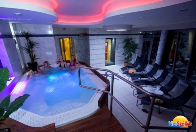 12 személyes jakuzzi, barlangszerű bejárattal kiépített infraszauna, fából készült dézsazuhany, relax sókabin, masszázsok, manikűr és pedikűr, valamint fintesz terem áll vendégeink rendelkezésére.