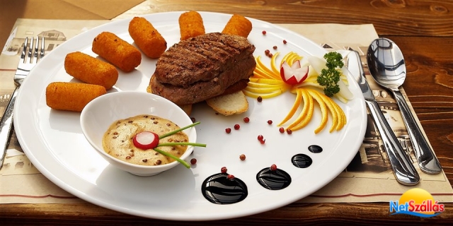 Panziónk éttermével és színvonalával méltán alkalmas arra , hogy mind családi mind baráti társaságok részére kellemes pihenést és kikapcsolódást biztosítsunk .