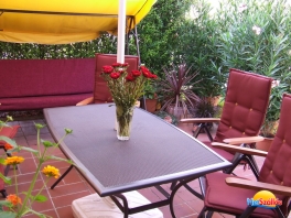 Az 5-ös apartmanunk 2 felnőtt 2 gyermek részére, nagy hálószobát, konyhát, étkezőt,nappalit,fürdőszobát és teraszt tartalmaz.