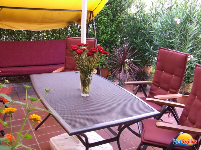 A házban 4 kétszemélyes és egy 2 + 2 személyes, családi apartman található.