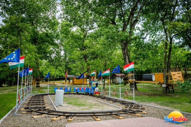 A Panzió udvarával szemben elhelyezkedő fás területet bejáró Thomas színvilágú Mese Vasútunk az eredetivel minden apró részletében megegyező elektromos, zárt pályán haladó Kisvasút, amelyen akár 12 gyermek is utazhat egyidőben.